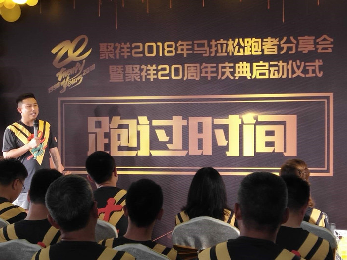 2018年8月26日公司高管及所有參加 “2018鄂爾多斯國際馬拉松”的公司員工齊聚公司6樓,參加以“跑過時間”為主題的“聚祥2018年馬拉松跑者分享會暨聚祥20周年慶典啟動儀式”。